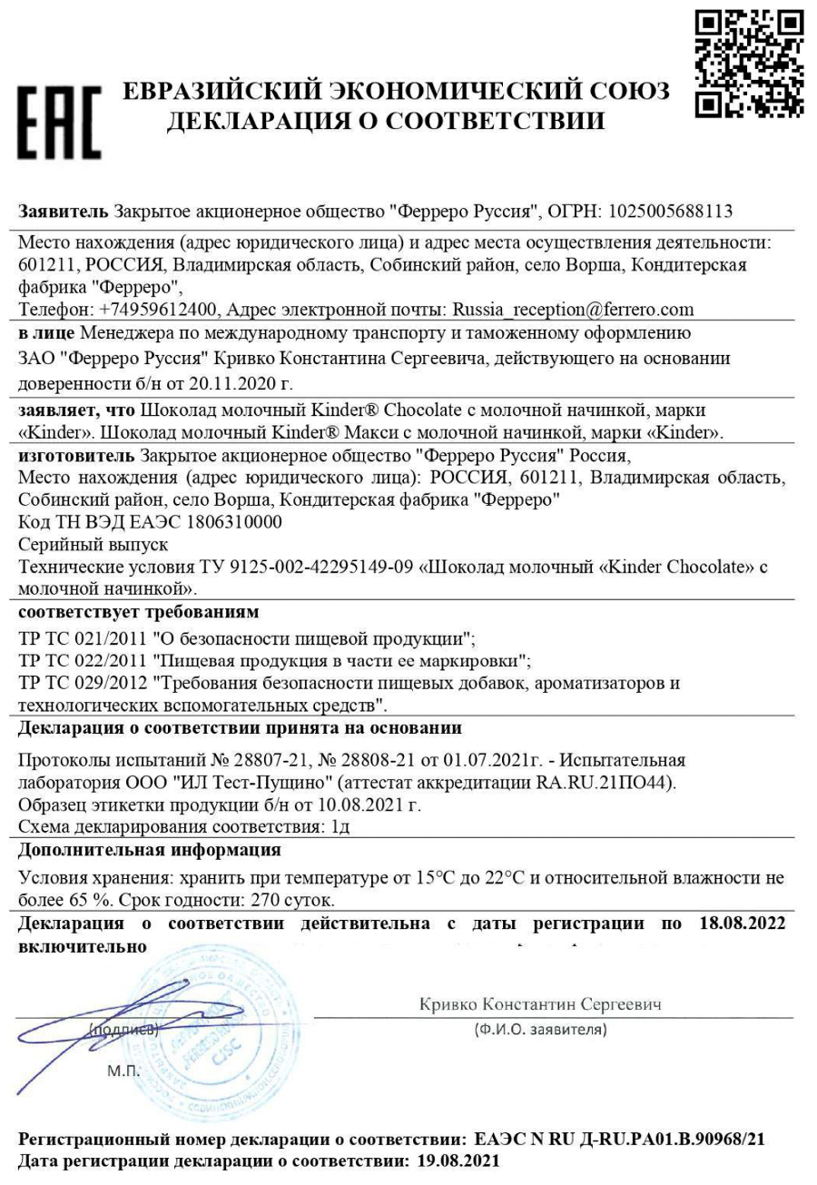 Сертификат на упаковку для сладких новогодних подарков