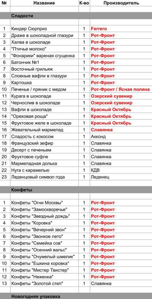 Опубликовано в Составы подарков